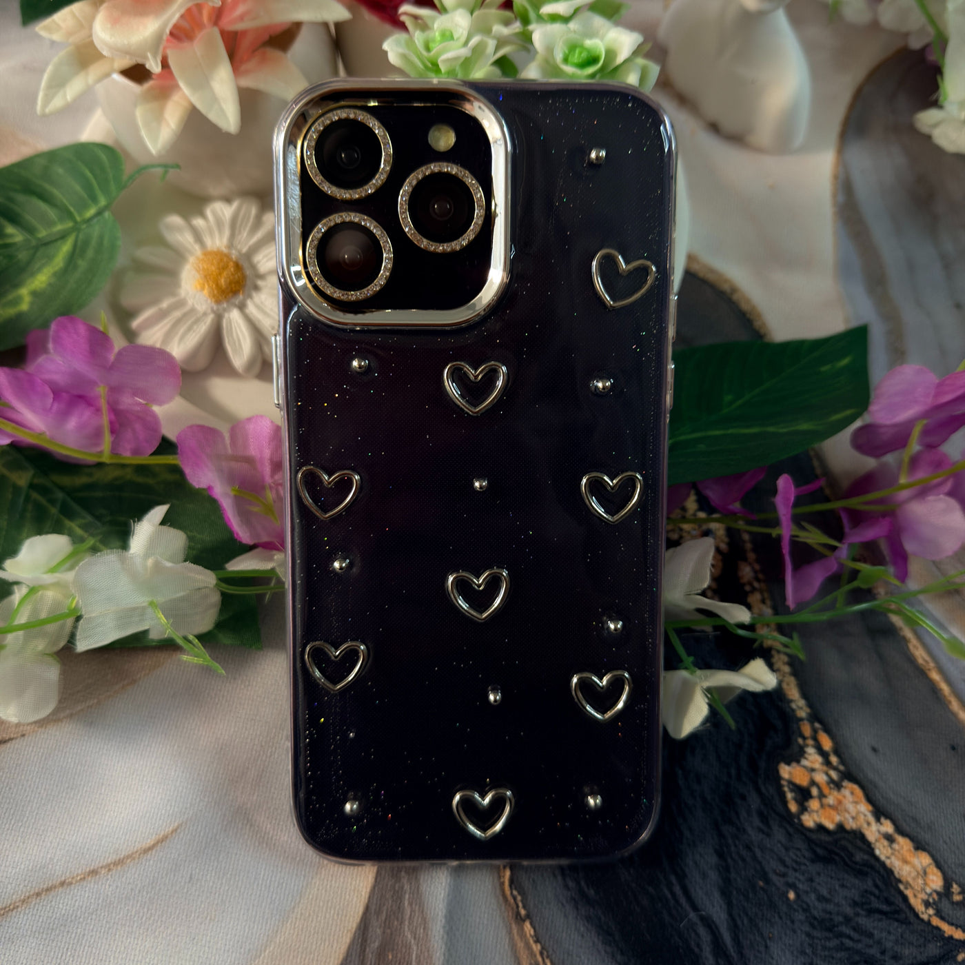 Simli Kalp Şeffaf Premium Telefon Kılıfı